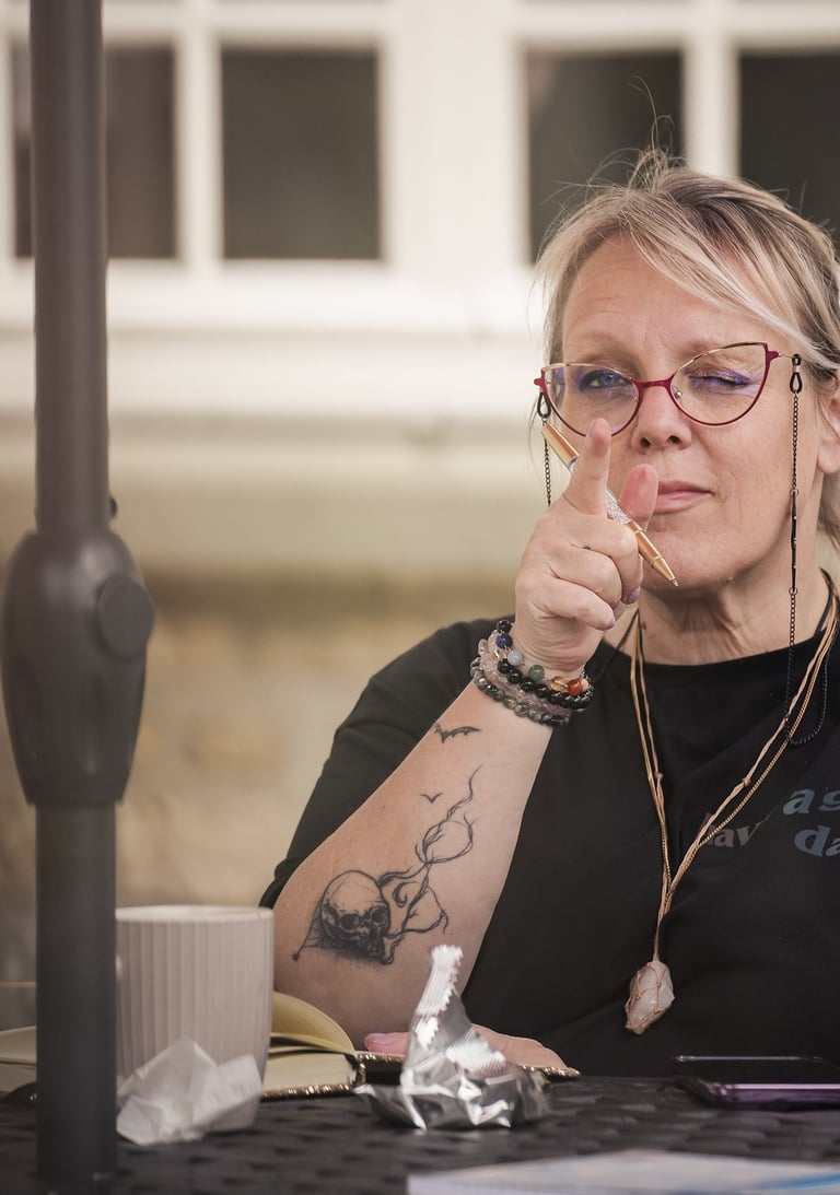 Dans notre trio, Jessica est celle qui entend ce que l’âme chuchote, capte l’invisible avec une précision fine et soutient avec une présence profondément rassurante.